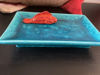 Sushi bordje met vis 3. Uniek exemplaar. Handgemaakt van keramiek. Blauw glazuur en oranje lave glazuur voor de vis.
